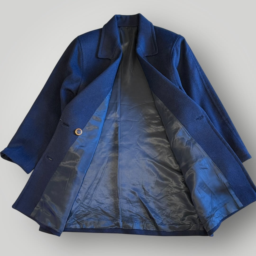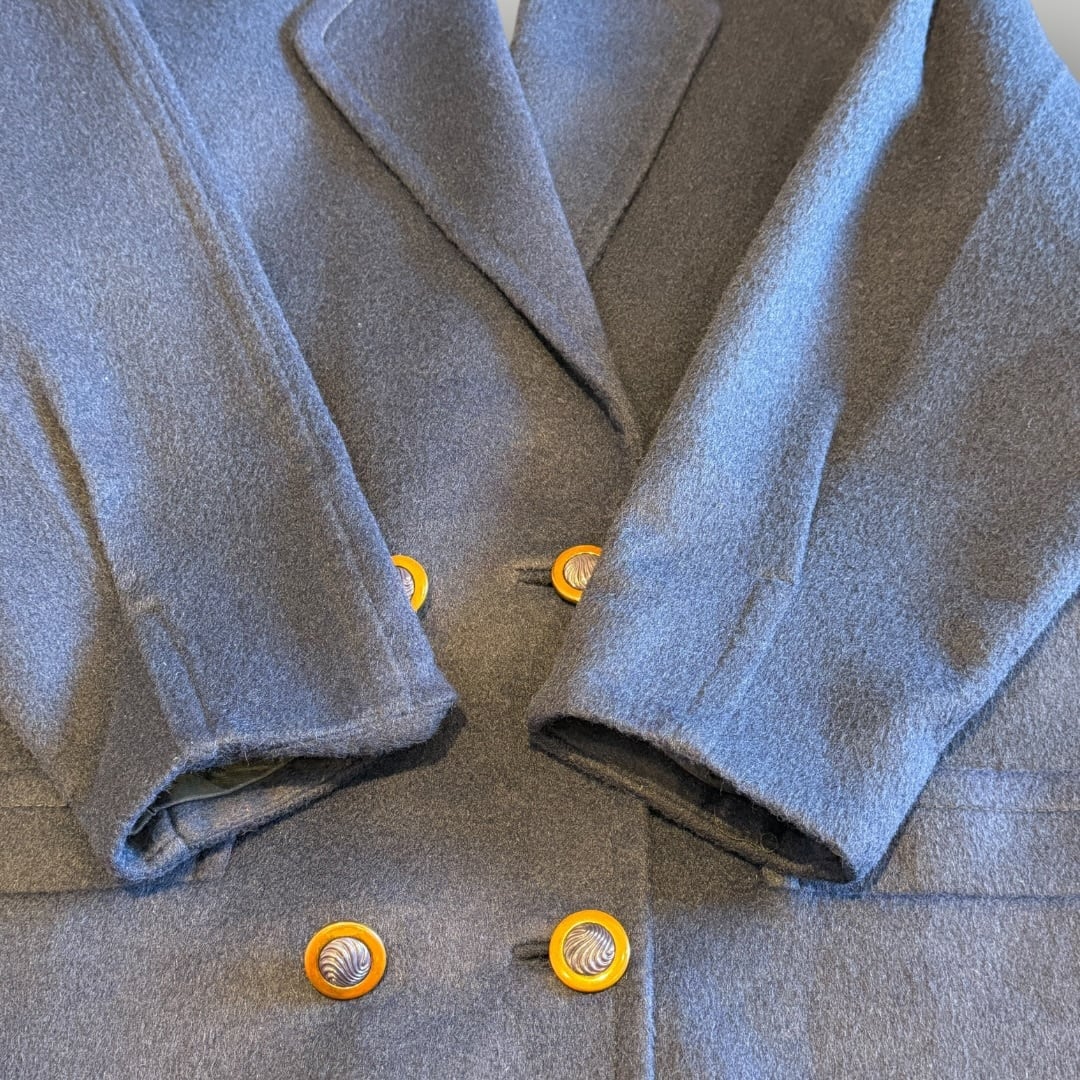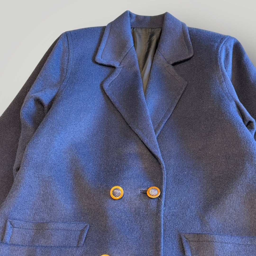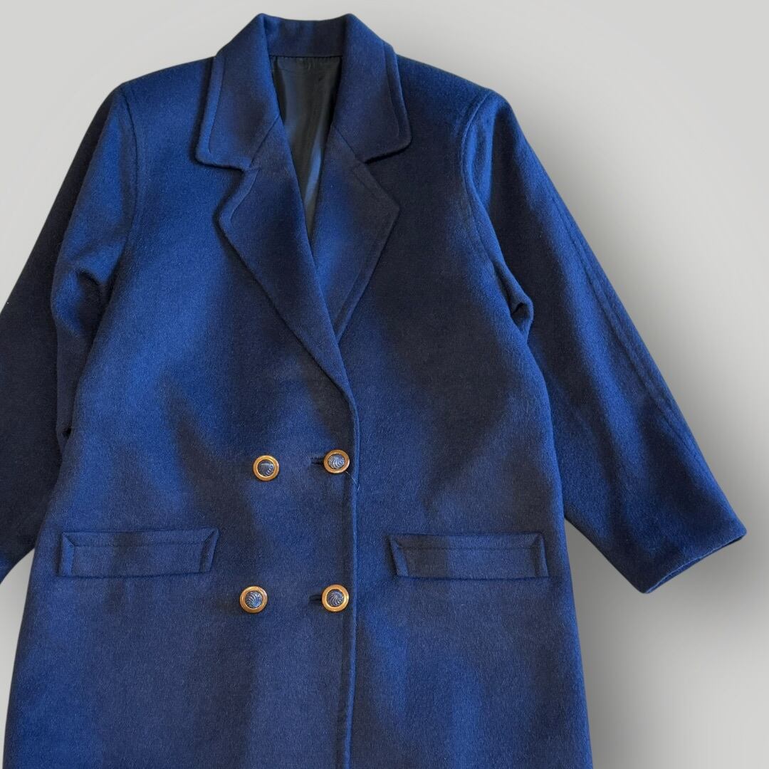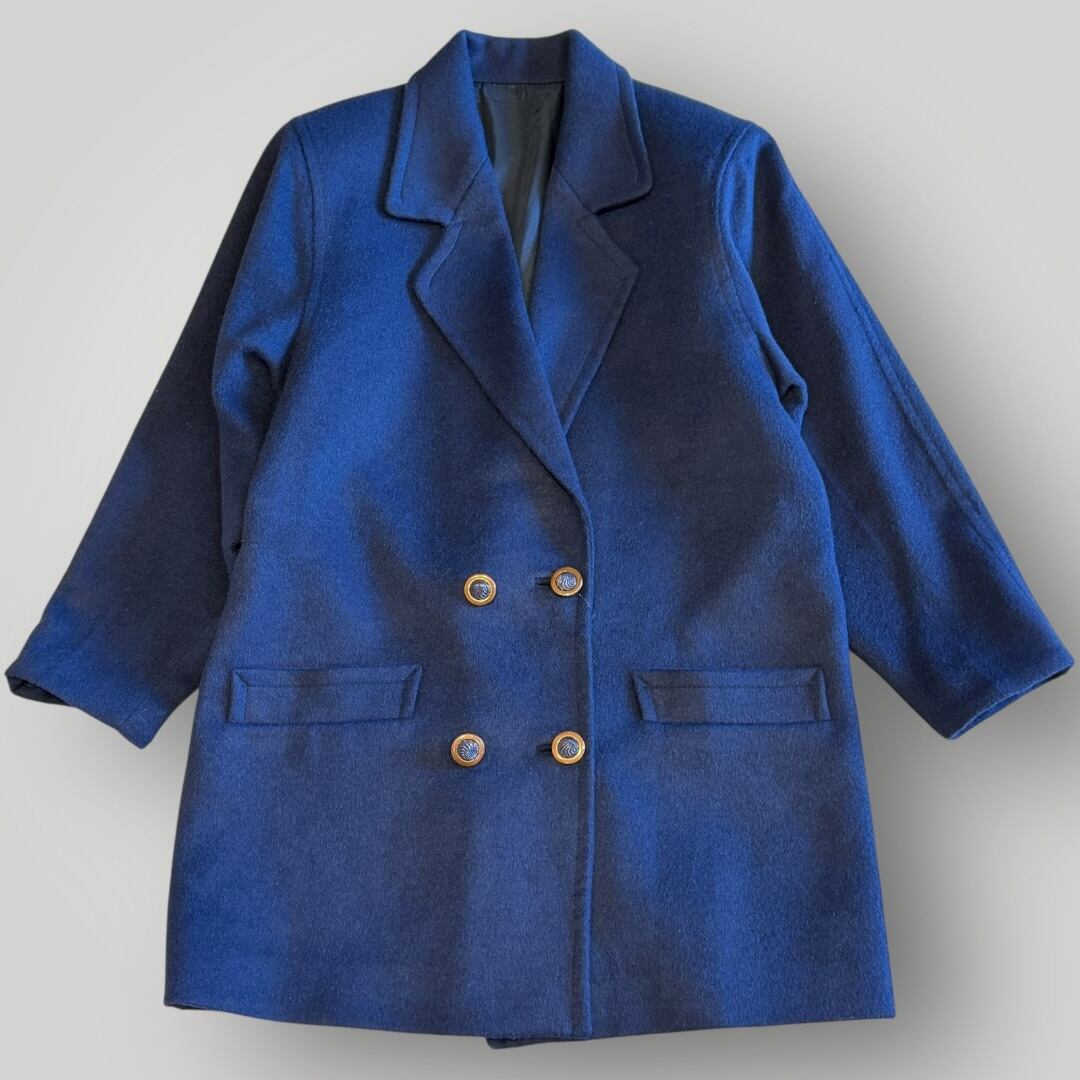 ダブルチェスターコート ネイビー 古着 レディース