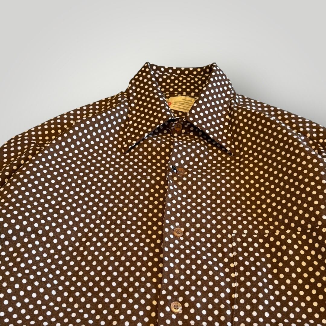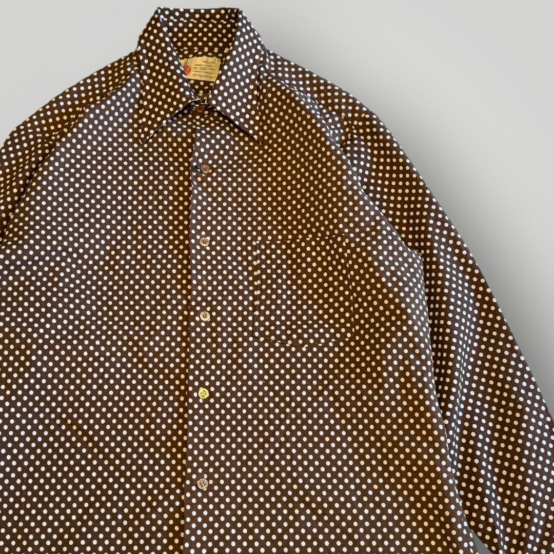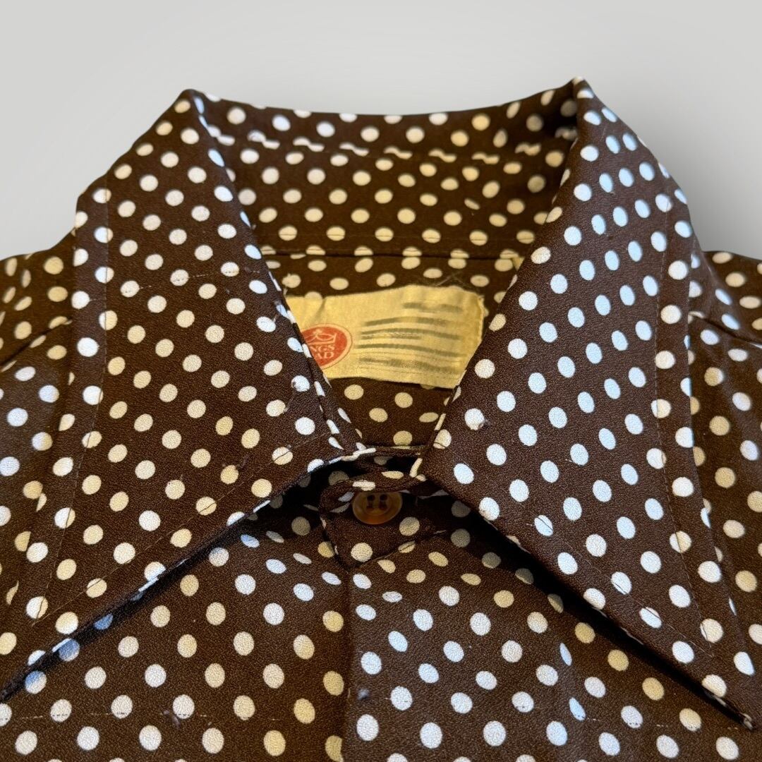 Sears ドットシャツ ヴィンテージ 70’s 古着 水玉 ブラウン